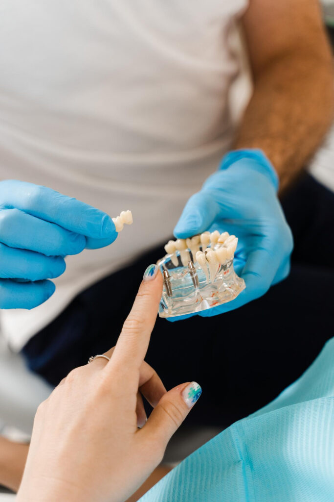 Durch den Prozess der Osseointegration verbindet sich das Implantat fest mit dem Knochen und dient als dauerhafte Verankerung für den Zahnersatz.